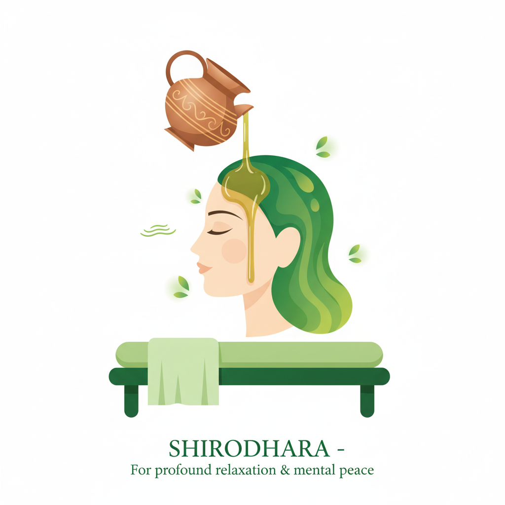 A soothing therapy where warm medicated oil is gently poured on the forehead to calm the mind and nervous system.