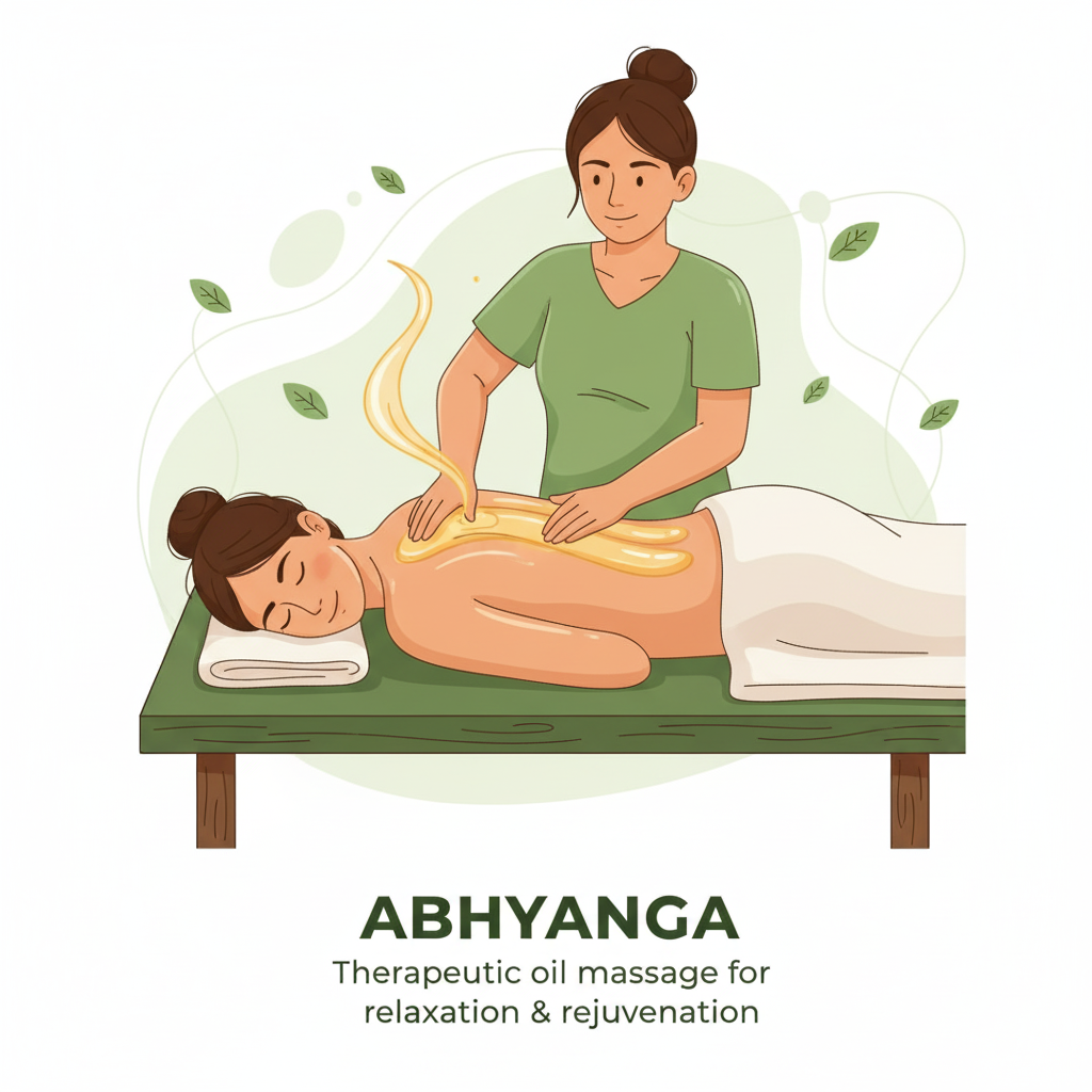 A traditional full-body Ayurvedic oil massage using warm medicated herbal oils.